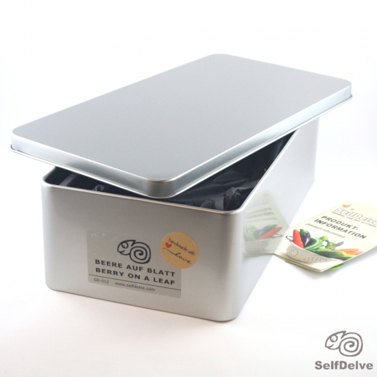 • Lieferung in einer silberfarbigen Metalldose, eingeschlagen in schwarzes Seidenpapier, inclusive einer Probe Gleitgel